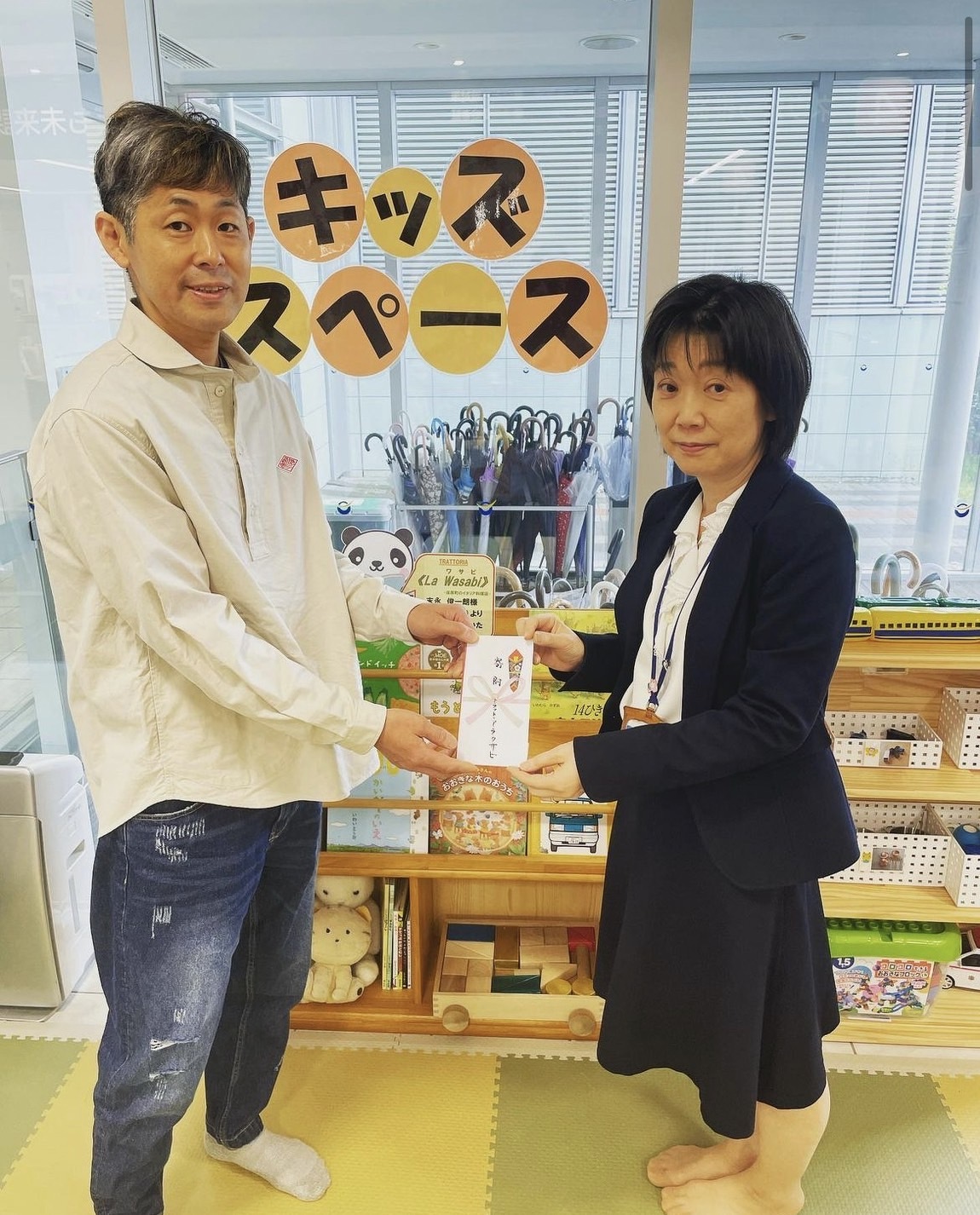 2023年04月27日(木) お知らせ ご報告 今年も3月に開催しました震災チャリティー、たくさんの方々にご購入いただき誠にありがとうございました。 おかげさまで4月26日に、売り上げの一部、皆様方の善意を伊達市こども未来課に寄付させていただきました。 去年の寄付で購入された絵本達が本棚に並べられていました。私たちの想いがこうやって形になっていて心が温かくなりました。 改めまして感謝申し上げます。 今後も当店は食を通しての地域貢献活動に取り組んでまいります。