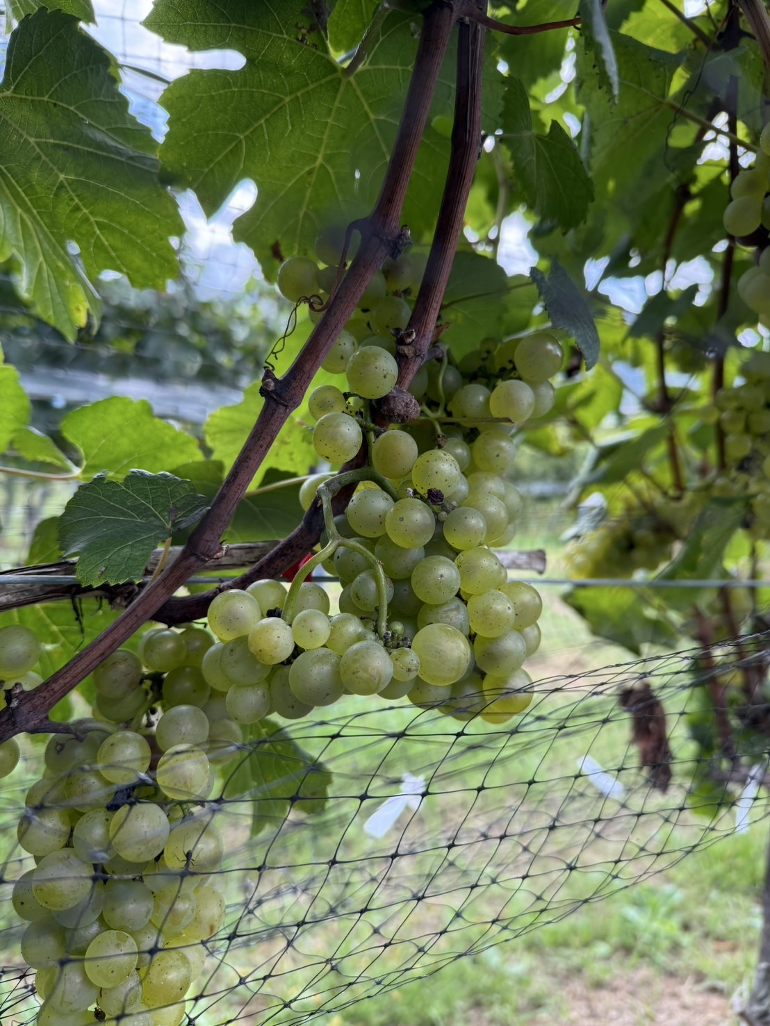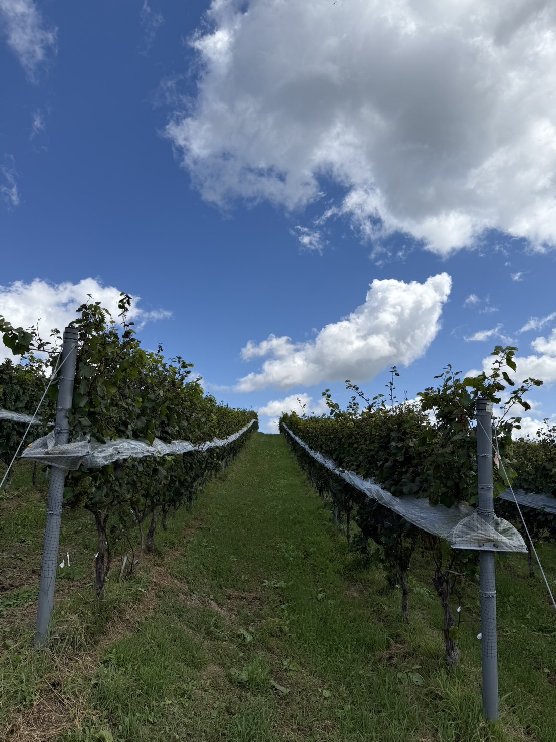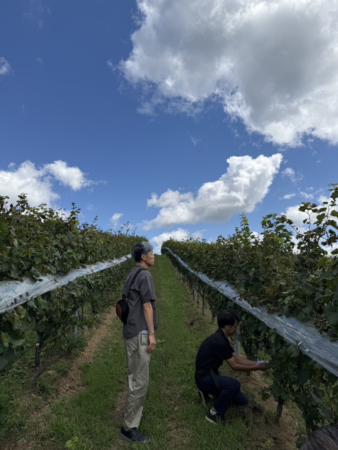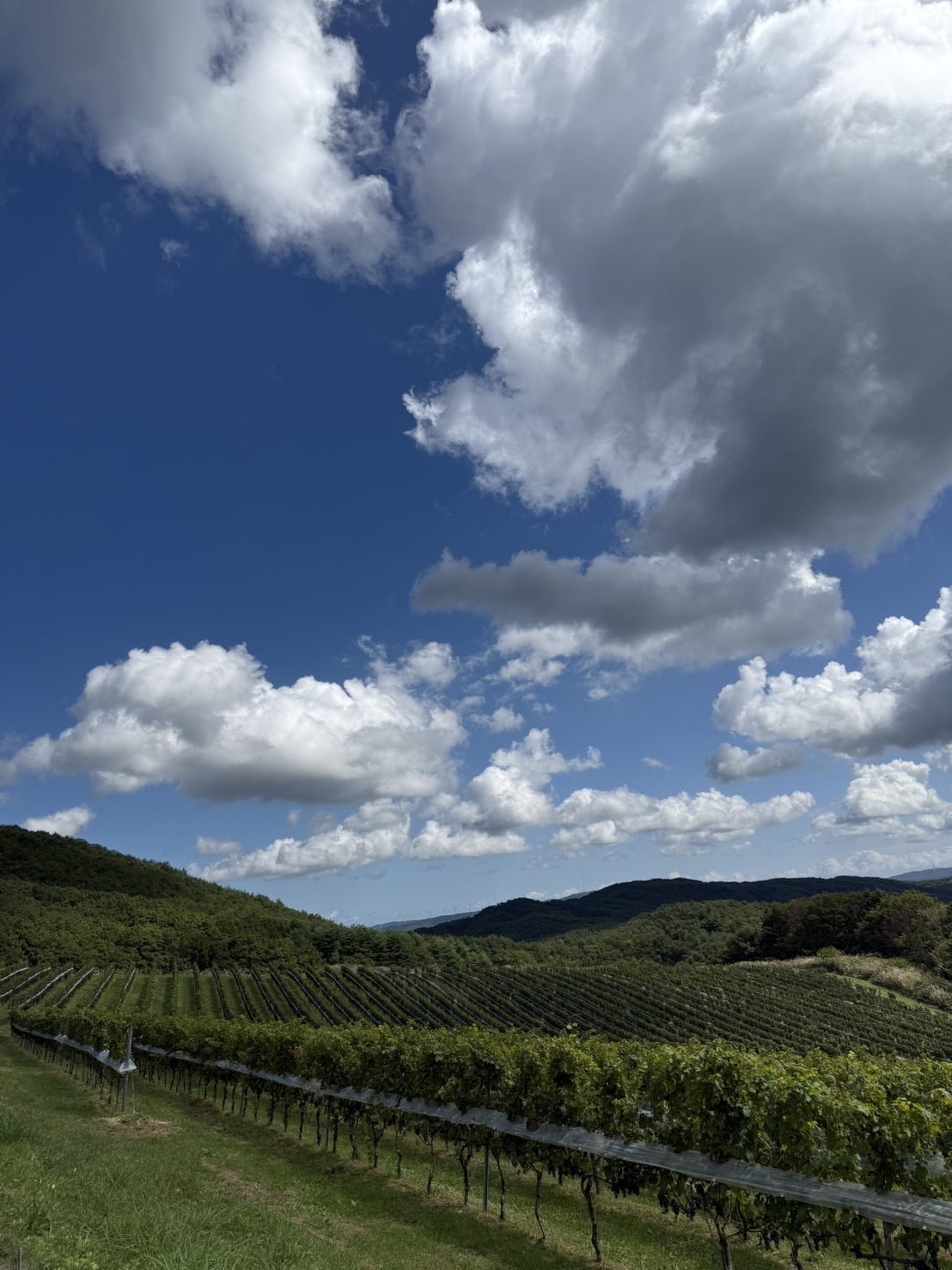 メインの葡萄品種から試験栽培の葡萄品種まで…10種類以上が栽培されていて、野生動物の被害に遭わないようと、全てにネットで保護されていて丁寧な仕事ぶりを間近で感じることができました✨