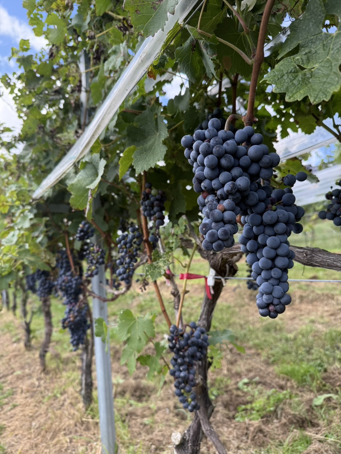 広大な敷地内の自社畑には、あと数日で収穫を迎える葡萄たちがたわわに実っていました!
